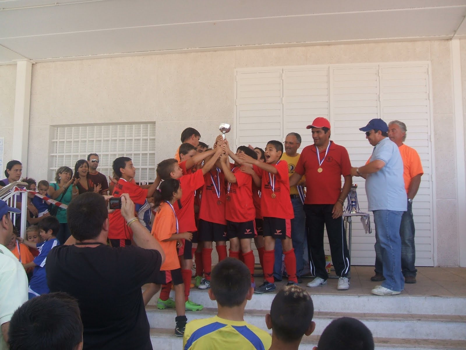 Los jugadores enseñando a sus aficionados(Padres) la copa conquistada